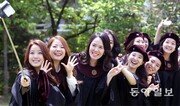 화창한 봄 햇살 속에 졸업을 앞둔 대학생들의 미소가 아름답다. 11일 서울 노원구 서울여대 학생들이 활짝 웃으며 졸업사진을 찍고 있다. 박영대 기자 sannae@donga.com}
