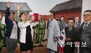 17일 서울 강북구 근현대사기념관에서 관람객들이 독립운동가의 활동을 담은 조형물을 배경으로 기념사진을 찍고 있다. 북한산국립공원관리공단 인근에 문을 연 근현대사기념관은 지상 1층, 지하 1층 규모로 2·8독립선언서, 을사늑약문 등 근현대사 유물 복제품이 전시돼 있다. 박영대 기자 sannae@donga.com}