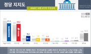 더불어민주당 지지도가 일주일 사이에 4% 넘게 급락했다. 15일 리얼미터는 TBS 의뢰로 지난 12일부터 14일까지 사흘간 전국 유권자 1506명을 대상으로 유무선 응답을 완료했다. 그 결과, 민주당 지지도는 전주보다 4.3%포인트 하락한 31.3%로 조사됐다. 권역별로 충청권(13.7%포인트↓), 경기·인천(5.9%포인트↓), 대구·경북(4.9%포인트↓)에서 하락 폭이 컸다. 연령대별로는 20대(13.3%포인트↓), 40대(8.3%포인트↓)에서 급락했다.반면 국민의힘은 1.3%포인트 올라 30.2%로 30%대를 회복했다.양당간 지지도 격차는 1.1%포인트로, 2주만에 다시 오차범위(95% 신뢰수준에 ±2.5%포인트) 안 결과를 보였다. 리얼미터는 ‘피살 공무원’ 아들 답신 무성의 논란과 전세난, 추미애 법무부 장관의 ‘장편소설’ 발언, 라임·옵티머스 사건 등이 지지율 하락에 영향을 끼쳤다는 분석을 내놨다. 한편 문재인 대통령의 국정 수행 지지율(긍정평가)은 지난주보다 0.6%포인트 오른 45.4%로 집계됐다. 긍정평가와 부정평가간 격차는 4.6%포인트로 오차범위 안이다.조혜선 동아닷컴 기자 hs87cho@donga.com}