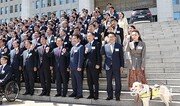 제21대 국회 초선의원 연찬회에 참석한 당선자들이 20일 국회의사당 본관 앞 계단에서 기념촬영을 하고 있다. 시각장애인인 미래한국당 비례대표 김예지 당선자(앞줄 오른쪽)의 안내견 조이는 이날 헌정 사상 처음으로 국회 본회의장에 입성한 안내견이 됐다. 김재명 기자 base@donga.com}