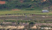 봄 농사철을 맞아 북한 주민들이 들녘에 나와 일하는 모습이 카메라에 포착됐다. 경기 파주 오두산 통일전망대에서 바라본 북한지역 황해도 개풍군 일대는 농사일로 분주한 주민들을 볼 수 있었다. 논 옆에는 단체로 타고 온 것으로 보이는 봉고 버스가 주차되어 있었고, 주민들은 논에서 모내기를 하고 있었다. 또 다른 논에서는 트랙터 여러 대가 바쁘게 움직이고 있었다. 한쪽에서는 누런 소가 보이기도 했다. 북한에는 모를 자동으로 심는 이양기가 아직 보편화 되지 않아 손 모내기를 하는 것으로 알려졌다. 한편 신종코로나바이러스 감염증으로 문을 닫았던 오두산 통일전망대는 지난 8일부터 부분 재개관에 들어갔다. 다만 전망대 입구에서 마스크를 착용하고, 발열검사를 거친 후, 인적사항을 기재해야 입장이 가능하다.글·사진=김재명 기자 base@donga.com}