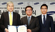 삼성이 2018 평창 겨울올림픽에 현금 800억 원을 포함해 총 1000억 원 규모의 후원을 하기로 했다. 2018 평창겨울올림픽조직위원회는 6일 서울 종로구 국립현대미술관 서울관에서 삼성과 후원 협약식을 가졌다. 삼성전자는 2018년까지 프린터와 복합기 등 정보기술(IT) 제품과 현금을 지원하기로 했다. 삼성생명 삼성화재 삼성증권 등도 현금 후원에 참여한다. 제일모직은 대회 운영에 필요한 의류를 지원한다. 삼성은 1998년 나가노 겨울올림픽부터 무선통신 분야의 올림픽 후원사(TOP·The Olympic Partner)로 참여했다. 2016 리우데자네이루 올림픽까지 후원계약을 맺었던 삼성은 지난해 8월 국제올림픽위원회(IOC)와 2020 도쿄 올림픽까지 후원 계약을 연장하고 무선통신 분야뿐 아니라 태블릿PC, 노트북, 데스크톱 등으로 후원 분야를 넓혔다. 이날 삼성의 후원 협약은 이 같은 TOP 계약과는 별도로 평창 겨울올림픽을 후원하기 위한 것이다. 박상진 삼성전자 사장은 “삼성이 우리나라에서 처음 열리는 겨울올림픽에 힘을 보태게 된 것을 매우 뜻깊게 생각한다. 평창 겨울올림픽이 세계인이 기억하는 성공적인 올림픽이 되기를 기원한다”고 말했다. 조양호 평창겨울올림픽조직위원장은 “통 큰 결정을 내려준 이건희 회장, 이재용 부회장, 박상진 사장 등 삼성 관계자들께 감사한다. 유치 과정에서도 물심양면으로 도움을 준 삼성은 진정한 올림픽 패밀리 기업이다. 삼성의 후원으로 천군만마의 힘을 얻었고 대회 전반의 동력을 얻게 됐다. 사회적 기업의 소임을 다하기 위해 어려운 환경에서도 쉽지 않은 결정을 내려준 삼성그룹에 존경과 감사의 말씀을 드린다”고 말했다. 곽영진 조직위원회 사무총장은 “삼성은 이미 TOP 파트너로서 따로 지역 후원을 할 필요가 없었다. 이런 경우는 아주 예외적이다”고 말했다. 이날 협약으로 조직위원회는 삼성과 대한항공, KT, 영원아웃도어, 파고다어학원, 삼일회계법인 등 6곳과 후원협약을 체결했다. 조직위원회 관계자는 “후원 목표액 8500억 원 중 41%를 달성했다”며 “삼성의 참여로 다른 기업들의 후원도 본격화될 것으로 기대한다. 올해 말까지 목표액의 70%를 달성할 수 있을 것”이라고 말했다.이원홍 기자 bluesky@donga.com}