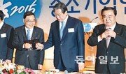 중소기업중앙회는 7일 서울 영등포구 여의도동 중소기업중앙회 그랜드홀에서 경제계 및 정·관계 인사들이 참석한 가운데 ‘2015 중소기업인 신년 인사회’를 개최했다. 이 자리에서 김기문 중기중앙회장은 “필사즉생의 각오로 중소기업이 기업가 정신으로 어려운 환경을 극복하는 한 해가 되기를 바란다”고 말했다. 왼쪽부터 한덕수 한국무역협회장, 박용만 대한상공회의소 회장, 김 중기중앙회장, 정홍원 국무총리, 김무성 새누리당 대표, 문희상 새정치민주연합 비상대책위원장. 변영욱 기자 cut@donga.com}
