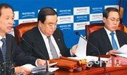 최문순 강원도지사(왼쪽)가 14일 서울 영등포구 여의도 국회에서 열린 새정치민주연합 비상대책위원회 회의에 참석해 2018 평창 겨울올림픽 준비 현황을 보고하고 있다. 최 지사는 “이제 올림픽과 관련한 소프트웨어 마련에 집중해야 한다”며 “올해 사업비 1120억 원 중 국비 700억 원이 필요하다”며 협조를 요청했다. 변영욱 기자 cut@donga.com}