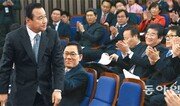 직전 새누리당 원내대표였던 이완구 국무총리 후보자가 2일 국회에서 새 원내대표를 뽑기 위해 열린 의원총회에 참석해 이임 인사를 하기 위해 자리에서 일어서고 있다. 변영욱 기자 cut@donga.com}