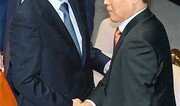 16일 오후 이완구 국무총리 후보자 인준 표결에 앞서 새누리당 유승민 원내대표(왼쪽)와 새정치민주연합 우윤근 원내대표가 악수하고 있다. 당초 야당이 불참하고 여당의 단독 표결이 될 것이라는 관측과 달리 우 원내대표는 야당의 표결 참여를 이끌어냈다. 변영욱 기자 cut@donga.com}
