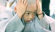 불기 2559년 부처님오신날(5월 25일)을 2주일 앞둔 11일 서울 종로구 조계사에서 열린 ‘동자승 삭발 수계식’에서 한 동자승이 삭발한 머리가 어색한 듯 두 손으로 어루만지고 있다. 홍진환 기자 jean@donga.com}