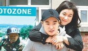 12일 경기 고양시 육군 제30사단 신병교육대에서 열린 ‘2015 공감·소통 입영문화제’에 참가한 입영 장정이 어머니를 업은 채 포토존 앞에 서 있다. 고양=홍진환 기자 jean@donga.com}