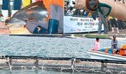 2009년 어선에 불법 포획돼 돌고래쇼에 동원됐던 남방큰돌고래 태산이(20년생·수컷)와 복순이(17년생·암컷)의 자연 방사가 결정된 가운데 14일 경기 과천시 서울동물원 해양관에서 사육사들이 태산이에게 바셀린을 발라주고 있다(위 왼쪽 사진). 이어 기중기가 들것에 실린 태산이를 조심스럽게 옮기고 있다(위 오른쪽 사진). 무진동 차량과 특별 전세기를 번갈아 타며 제주 앞바다에 도착한 태산이와 복순이가 가두리에서 자유롭게 헤엄치고 있다. 돌고래들은 약 두 달간 적응훈련을 마친 뒤 완전한 자유의 몸이 된다. 홍진환 기자 jean@donga.com / 제주=뉴시스}