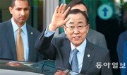 반기문 유엔 사무총장이 18일 인천국제공항을 통해 입국하며 취재진들을 향해 손을 흔들며 인사하고 있다. ‘2015 세계교육포럼(WEF)’ 참석차 방한한 반 총장은 22일까지 4박 5일 동안 머무르며 박근혜 대통령과의 면담 등의 일정을 소화한다. 인천=홍진환 기자 jean@donga.com}
