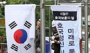 호국보훈의 달인 6월을 맞아 1일 서울 송파구 올림픽대로에 태극기와 호국보훈을 상징하는 깃발을 게양하고 있다. 순국선열을 기리고 나라사랑 정신을 발전시키기 위한 이번 행사는 6월 한 달 동안 계속된다. 홍진환 기자 jean@donga.com}
