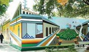 서울 강동구는 암사동 유적지 부근의 길 담벼락과 가로수를 개선해 그림 및 무늬로 꾸민 ‘선사로 가는 길’로 조성했다. 선사시대 주거 공간을 모티브로 나무에는 빗살무늬를, 담장에는 초막을 각각 그려 넣었다. 신원건 기자 laputa@donga.com}