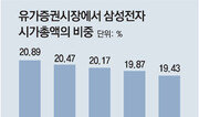 유가증권시장(코스피)에서 ‘대장주’로 통하는 삼성전자의 시가총액 비중이 23개월 만에 20% 밑으로 떨어졌다. 최근 메모리 반도체 시장을 부정적으로 전망하는 보고서들이 나오면서 외국인투자가들이 대거 삼성전자 매도 행렬에 나섰기 때문으로 풀이된다. 15일 한국거래소에 따르면 13일 현재 코스피 전체 시총(2285조3760억 원)에서 삼성전자(444조1518억 원)가 차지하는 비중은 19.43%로 집계됐다. 삼성전자 시총 비중은 9일 20.89%로 20%를 웃돌았지만 12일 19.87%로 떨어진 뒤 이틀 연속 19%대에 머물렀다. 삼성전자 시총 비중이 20%대 밑으로 떨어진 건 2019년 9월 4일(19.84%) 이후 23개월 만에 처음이다. 삼성전자 시총은 올해 1월 11일 543조2502억 원까지 불어나면서 코스피 대비 비중이 25%를 넘어섰다. 하지만 7개월간 주가가 하락하면서 시총이 100조 원 가까이 증발했다. 최근 삼성전자 시총이 급감한 건 외국인들의 매도 폭탄 때문이다. 외국인은 9∼13일 코스피에서 삼성전자(5조6068억 원)와 SK하이닉스(2조206억 원) 등 반도체주를 중심으로 순매도하며 주간 사상 최대치인 7조851억 원어치를 팔아치웠다. 김영환 NH투자증권 연구원은 “반도체 다운사이클에 대한 우려가 외국인의 대규모 매도를 촉발했다”고 설명했다. 같은 기간 외국인은 반도체주 대신 LG화학(3825억 원)과 삼성SDI(2975억 원) 등 2차전지주의 비중을 확대한 것으로 나타났다. 박민우 기자 minwoo@donga.com}