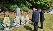 고하 송진우 선생(1890~1945) 탄생 130주년 추모식이 8일 서울 동작구 국립현충원 애국지사 묘역에서 열렸다. ‘고하 송진우 선생 기념사업회’(이사장 김창식 전 교통부 장관)가 주최한 이날 추모식에는 신종 코로바이러스 감염증(코로나19) 여파로 외부 인사 없이 고하의 장손 송상현 유니세프한국위원회 회장(79·전 국제형사재판소장·서울대 명예교수)과 김 이사장(91), 김종륜 사무국장만 참석했다. 참석자들은 선생의 묘에 헌화하고 참배한 뒤 서울 도봉구 ‘창동 3사자(獅子)’ 동상을 찾아 선생의 애국정신을 기렸다. 이 동상은 일제에 맞선 고하를 비롯해 가인 김병로, 위당 정인보 선생을 기리기 위해 세워졌다. 이들 3인은 일제강점기 현재의 도봉구 창동에 터를 잡고 일제에 항거했다. 참석자들은 이어 광진구 어린이대공원에 있는 선생의 동상에 참배하는 것으로 추모 일정을 마쳤다. 선생은 일제강점기 중앙학교 교장을 지냈고 국내외 민족지도자들과 함께 3·1운동을 주도했다. 동아일보 3대, 6대, 8대 사장을 역임했으며 1936년 8월 손기정 선수의 가슴에 달린 일장기를 지운 사진을 게재해 민족의식을 일깨웠다. 광복 후 국민대회준비위원장, 한국민주당 수석총무로 활동했다. 1963년 건국공로훈장이 추서됐다.정성택 기자 neone@donga.com}
