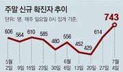 우려했던 신종 코로나바이러스 감염증(코로나19) 4차 유행이 시작됐다. 7일 0시 기준 코로나19 신규 확진자는 1212명. 하루 만에 466명이 급증했다. 코로나19 사태 전체를 놓고 봐도 3차 유행이 정점이던 지난해 12월 25일(1240명)에 이어 두 번째로 많다. 7일 0시부터 오후 9시까지 발생한 신규 확진자도 1100명을 넘었다. 8일 발표될 일일 확진자는 1200명을 넘어 1300명에 육박할 수도 있다. 신중하던 정부도 현 상황을 ‘4차 유행의 시작’으로 봤다. 이기일 중앙재난안전대책본부(중대본) 제1통제관은 7일 “정부는 현재 4차 유행의 초입에 진입하는 단계로 판단한다”고 말했다. 심각한 건 확산세를 꺾기 어렵다는 것이다. 이 통제관은 “7월까지 또는 8월 초까지 현 수준의 확진자가 나오지 않을까 추측한다”고 말했다. 박영준 중앙방역대책본부(방대본) 역학조사팀장은 “어느 순간에 갑자기 2000명으로 늘어날 가능성도 있다”고 전망했다. 이렇게 되면 현재 수도권 중심의 유행이 비수도권으로 퍼질 수 있다. 말 그대로 ‘대유행’ 상황이다. 그럼에도 정부는 수도권의 ‘사회적 거리 두기’ 단계를 격상하지 않고, 현행 2단계를 또 1주 연장했다. 5인 이상 사적 모임 금지, 식당 카페 등의 오후 10시 이후 영업 제한이 14일까지 계속된다. 그 대신 김부겸 국무총리는 “2, 3일 더 지켜보다가 상황이 잡히지 않으면 새 거리 두기 체계의 가장 강력한 단계(4단계)까지 취할 수 있다”고 말했다. 4단계가 적용되면 오후 6시 이후 모임 인원이 2명까지로 제한되고 행사·집회가 금지되는 등 사실상 ‘외출 금지’ 수준의 봉쇄조치가 내려진다. 서울과 수도권의 확진자 발생 기준은 이미 4단계에 근접했다. 이르면 주말에 4단계 격상 여부가 결정될 것으로 전망된다. 불과 한 달 전만 해도 백신 접종에 따른 ‘일상 회복’을 기대하던 상황은 이제 ‘셧다운(봉쇄)’을 걱정하는 상황으로 바뀌었다. 전문가들은 7월 ‘접종 공백’을 대비하지 않고 정부가 방역 완화 메시지를 쏟아낸 것을 가장 큰 이유로 꼽았다. 문재인 대통령은 이날 청와대에서 수도권 방역강화회의를 주재하고 “확진자가 다수 발생하는 지방자치단체는 특단의 대책이 필요하다”며 “방역지침 위반 시 무관용 원칙을 강력하게 적용할 것”이라고 밝혔다.유근형 기자 noel@donga.com박효목 기자 tree624@donga.com}