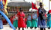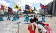 신종 코로나바이러스 감염증(코로나19)으로 인해 미뤄졌던 각종 궁궐 행사들이 재개 된 가운데 20일 경복궁 수문장 교대의식이 열리고 있다송은석기자 silverstone@donga.com}