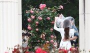 22일 오후 서울 송파구 올림픽공원에 피어난 여름을 알리는 장미꽃을 배경으로 한 연인이 기념 촬영을 하고 있다.송은석 기자 silverstone@donga.com}
