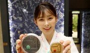 한 홍보 모델이 22일 경기 성남시 현대백화점 판교점에서 ‘경복궁 기념 메달’을 소개하고 있다. 이 메달은 문화재청과 한국조폐공사가 조선왕실 문화를 알리기 위해 추진하고 있는 ‘문화유산 로열 시리즈 기념메달’ 사업의 첫 번째 상품이다. 성남=송은석 기자 silverstone@donga.com}