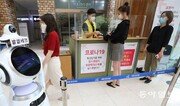 4일 서울 서초구청 출입문에 비치된 인공지능(AI) 로봇이 출입자들의 체온과 마스크 착용 여부를 확인하고 있다. AI 로봇에는 적외선 카메라와 안면인식 기기가 탑재돼 자동으로 출입자들을 검사했다.송은석 기자 silverstone@donga.com}