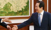 ‘대통령 공백 사태’ 속에서 14일 열린 황교안 대통령 권한대행과 정세균 국회의장 간 회동은 협치에 대한 원론적인 공감대만 확인한 채 끝났다. 야권이 ‘황교안 체제 길들이기’에 나선 가운데 황 권한대행도 순순히 끌려가지는 않겠다는 태도를 보이면서 미묘한 대립구도가 형성돼 있다. 여기에 여당은 내분 상태여서 당분간 실질적인 협치가 이뤄지기는 어려울 것으로 보인다. 황 권한대행은 이날 오후 1시 58분 국회 본청에 도착해 정문에서 기다리던 진정구 국회사무처 입법차장의 안내를 받아 국회의장 접견실로 이동했다. 지난달 8일 박근혜 대통령의 국회 방문 당시 우윤근 국회 사무총장이 하차 지점부터 영접한 것에 비하면 의전의 격이 낮다. 국회 관계자는 “평소 국무총리가 국회를 방문할 때는 영접을 하지 않는데 대통령과 총리 중간 정도의 의전을 갖추기 위해 고심했다”고 말했다. 정 의장은 황 권한대행을 접견실 앞에서 기다리다 인사를 나눴다. 이어 오후 2시 접견실에 함께 입장해 모두 발언을 한 뒤 2시 6분부터 2시 34분까지 28분간 비공개 회동을 가졌다. 정 의장과 황 권한대행은 비교적 활발히 대화를 나눴다고 한다. 황 권한대행은 “정부 관료들은 의원들과 달리 소통하는 방법이 미숙하다. 정 의장이 소통을 잘하시는 분이니 잘 배우겠다”며 국회와의 소통을 강화하겠다는 뜻을 밝힌 것으로 전해졌다. 정 의장 측은 “황 권한대행이 국회와 소통하려는 의지가 있다”고 평가했다. 앞서 12일 정 의장은 기자간담회에서 “대통령 권한대행과 국회의장이 그냥 얼굴만 보는 것은 바람직하지 않다”고 말했지만 이날 협치 방안에 대한 진전은 없었다. 야당은 연일 황 권한대행에 대한 압박 수위를 높이고 있다. 황 권한대행 체제 초반에 확실하게 기선을 제압하겠다는 의도로 풀이된다. 더불어민주당 추미애 대표는 이날 최고위원회의에서 황 권한대행을 계속 ‘황 총리’라고 호칭하면서 “마치 (탄핵) 가결을 기다린 사람처럼 대통령 행세부터 하고 있다”고 비판했다. 우상호 원내대표는 황 권한대행의 국회 대정부질문 출석과 관련해 “국회를 무시하면서 몰락의 길을 갔던 박근혜 대통령의 전철을 따르지 않길 바란다”고 경고했다. 황 권한대행은 신중한 모습을 보이고 있지만 여당 지도부가 사실상 공백인 상태에서 야당과 협의를 한다면 일방적으로 끌려갈 것이라는 점을 우려하고 있다. 이에 국회 대정부질문에는 불출석 의사를 전했고, 야 3당 대표와의 회동에도 부정적이다. 총리실 관계자는 “국회와의 협치는 필요하지만 여당 없이 야당하고만 협의하는 것은 맞지 않다”고 말했다. 야권도 여당이 혼란스러운 상황에서 여야정 협의체가 가동되기는 어려울 것으로 보고 있다. 정 의장은 이날 “여당의 새로운 지도부가 선출되면 국회 상황이 안정돼 더 원활한 소통이 이뤄질 것”이라고 말했다. 국민의당 박지원 원내대표도 이날 비상대책위원-국회의원 연석회의에서 “국민은 많은 기대를 하고 있지만 구성원 자체의 성격상 구성이 참으로 난망하다”며 “당분간은 어렵다”고 밝혔다. 한편 황 권한대행은 전날 학계·언론계 원로를 만난 데 이어 이날 고건, 이홍구, 한덕수 전 국무총리 등 사회 원로들과 오찬 간담회를 했다. 대통령 권한대행 경험이 있는 고 전 총리는 2003년 4당 국정협의체를 통해 이라크 추가 파병 등 현안을 처리했던 사례를 언급하며 “여야정 협의체를 구성할 필요가 있다”고 조언했다. 장택동 will71@donga.com·우경임·한상준 기자}