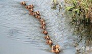 흰뺨검둥오리 가족이 물놀이를 나왔네요. 때가 되면 부모 오리는 수영과 잠수를 가르친다고 합니다. 새끼 오리들이 줄지어 따라다니는 것을 보니 “엄마 말 잘 들어야 한다”고 단단히 일러두는 듯하네요. 이 모습을 보고 있자니 괜스레 부모님 생각이 납니다. 어버이날은 지났지만 전화 한 통 드려야겠습니다. 사진=박영대 기자 sannae@donga.com 글=신무경 기자 yes@donga.com}