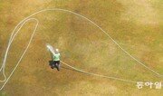 무엇처럼 보이시나요. 긴 호스를 끌고 다니며 땅에 물을 뿌리는 사람? 어쩌면 보아 뱀에 잡아먹힌 코끼리를 형상화하려는 것은 아닐는지. 혹시 모자를 그려보려고 하는 것일지도 모르고요. 무엇이 됐든 더운 날씨에 쉬엄쉬엄 하시기를 바랍니다. 사진=장승윤 기자 tomato99@donga.com 글=신무경 기자 yes@donga.com}