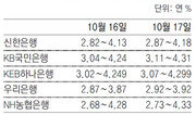 시중은행의 주택담보대출 금리가 일제히 올랐다. 연말 미국 기준금리 상승을 앞두고 시장금리가 빠르게 오르자 은행들이 금리 조정에 나선 것이다. 대출자들의 빚 부담도 그만큼 커지게 됐다. 17일 은행권에 따르면 신한은행과 KEB하나은행, 우리은행, NH농협은행은 이날 변동금리 주택담보대출 금리를 0.05%포인트씩 올렸다. △신한은행은 2.82∼4.13%에서 2.87∼4.18%로 △하나은행은 3.02∼4.249%에서 3.07∼4.299%로 △우리은행은 2.87∼3.87%에서 2.92∼3.92%로 △농협은행은 2.68∼4.28%에서 2.73∼4.33%로 각각 금리를 올렸다. 이는 6개월간 처음 계약한 금리를 적용받다가 변동금리로 바뀌는 상품이다. 은행들이 금리를 올린 것은 16일 전국은행연합회가 발표한 9월 신규취급액 기준 코픽스(COFIX·자금조달비용지수)가 0.05%포인트 올랐기 때문이다. 은행들은 코픽스에 가산금리를 더해 대출금리를 정한다. 다만 KB국민은행은 대출금리를 3.04∼4.24%에서 3.11∼4.31%로, 코픽스 상승분보다 더 많은 0.07%포인트를 올렸다. 국민은행 관계자는 “분기별로 조달금리와 유동성 등을 감안해 가산금리를 조정한 내용을 반영했다”고 설명했다.강유현 기자 yhkang@donga.com}