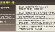 정부가 급증하는 가계부채를 잡기 위해 아파트 집단대출에 대한 추가 규제를 추진하고 있다. 특히 아파트 중도금 대출에 대한 보증 비율을 90%에서 80%로 낮추는 방안을 유력하게 검토하고 있다. 보증 비율이 낮아지면 은행들이 집단대출 심사를 그만큼 까다롭게 할 수밖에 없다. 이는 다시 가계부채의 증가세를 제어하는 효과로 이어질 수 있다는 게 정부의 판단이다. 19일 정부 관계자는 “금융회사들에 대한 정부의 중도금 대출 보증 비율을 90%에서 80%로 줄이는 내용을 마련해 관계부처와 막바지 협의를 진행 중”이라고 밝혔다. 이 내용은 부처 간 협의와 당정 협의 등을 통과하면 24일 발표될 가계부채 종합대책에 포함된다. 중도금은 새 아파트를 분양받으면서 내는 계약금과 입주 때 내는 잔금 사이에 치르는 금액으로, 일반적으로 집값의 60% 정도다. 금융회사들은 건설사와 협약을 맺고 중도금과 잔금을 합친 금액을 ‘집단대출’이라는 이름으로 대출해준다. 대출 계약은 분양 계약자들이 은행들과 개별적으로 작성하지만 대출자금은 건설사로 바로 지급돼 건설비 등의 용도로 쓰인다. 이 과정에서 현재는 공공기관인 주택도시보증공사(HUG)와 주택금융공사가 중도금 대출액의 90%까지 보증을 해준다. 건설공사가 끝나기 전에 건설사가 부도 등으로 공사를 마무리하지 못하면 이 기관들이 은행에 대출액의 90%를 대신 갚아준다는 뜻이다. 은행들은 이 기관들의 보증을 기대하고 아파트사업의 수익성 등을 꼼꼼히 확인하지 않은 채 대출을 내주는 일이 많았다. 이는 집단대출 등 가계부채를 늘리고 사업성이 떨어지는 지역에서도 아파트 분양 물량이 끊이지 않는 부작용을 가져왔다. 정부는 이런 문제점을 인식하고 지난해 중도금 보증 비율을 100%에서 90%로 낮췄고, 이번에 다시 80%로 낮추는 방안을 추진하는 것이다. 보증 비율이 내려가면 수익성이 떨어지는 아파트 분양 사업장들은 2금융권 대출로 밀려날 가능성이 크다. 또 분양 계약자들이 부담해야 할 대출 금리가 높아질 수도 있다. 정부는 HUG의 중도금 대출 보증 한도(수도권 및 광역시)를 6억 원에서 5억 원으로 낮추는 내용도 함께 검토 중이다.강유현 yhkang@donga.com·천호성 기자}