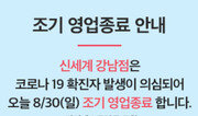 신세계백화점 강남점 직원이 신종 코로나바이러스 감염증(코로나19) 확진 판정을 받았다. 신세계 강남점은 지하 1층 식품매장에서 일하는 직원이 코로나19 양성 판정을 받으면서 이날 오후 1시 영업을 조기 종료했다.해당 직원은 지난 28일까지 근무한 후 이날 오전 확진 판정을 받은 것으로 알려졌다.이에 따라 매장 측은 현재 확진자의 동선을 파악하고 있으며, 함께 근무한 직원들을 대상으로 코로나19 검사를 진행 중이다. 한편 이날 한 네티즌은 인터넷상에 “우리도 (신세계 강남점) 입점업체인데 확진자가 나와서 장사 못 한다더라”면서 “새벽 2시부터 만든 물건을 다 폐기한다니 눈물난다”고 토로하기도 했다. 앞서 신세계 강남점은 지난 12일에도 코로나19 확진자가 확인되면서 조기 폐점한 바 있다. 조혜선 동아닷컴 기자 hs87cho@donga.com}