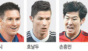 장군 멍군이다. 스페인 프리메라리가의 특급 골잡이 크리스티아누 호날두(29·레알 마드리드)와 리오넬 메시(27·바르셀로나·사진)의 득점 경쟁이 점입가경이다. 7일 호날두는 셀타 비고와의 안방경기에서 3골을 몰아넣으며 프리메라리가 역대 최다인 23번째 해트트릭을 기록했다. 팀은 3-0으로 이겼다. 그러자 하루 뒤인 8일 메시 역시 해트트릭으로 응수했다. 메시는 에스파뇰과의 안방경기에서 3골을 넣으며 팀의 5-1 승리를 이끌었다. 메시는 21번째 해트트릭을 기록하며 호날두의 최다 해트트릭 기록을 2개 차로 추격했다. 두 선수의 활약에 힘입어 레알 마드리드와 바르셀로나는 프리메라리가 1, 2위를 달리고 있다. 레알 마드리드는 12승 2패(승점 36), 바르셀로나는 11승 1무 2패(승점 34)로 박빙의 차이다. 올 시즌 프리메라리가 득점 경쟁에서는 호날두가 한발 앞서 있다. 호날두는 8일 현재 23골을 기록하며 득점 선두를 달리고 있다. 메시는 13골로 2위를 기록 중이다. 3위는 네이마르(11골)이다. 그러나 메시는 유럽축구연맹(UEFA) 챔피언스리그에서 호날두를 앞서고 있다. 메시는 챔피언스리그에서 74골로 챔피언스리그 역대 개인 통산 최다 골을 기록 중이다. 호날두는 챔피언스리그에서 개인 통산 71골을 기록하고 있다. 메시는 올 시즌 초반 프리메라리가에서 부상 후유증으로 고생하며 다소 부진했다. 이 점이 호날두가 메시와의 프리메라리가 득점 경쟁에서 앞서게 된 이유로 꼽힌다. 그러나 호날두는 끊임없이 노력하는 연습벌레이기도 하다. 호날두는 철두철미한 자기 관리와 노력으로 계속 발전하는 선수다. 두 선수의 득점 경쟁이 어디까지 이어질지 축구팬들의 관심을 끌고 있다.이원홍 기자 bluesky@donga.com}