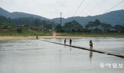 경북 예천의 회룡포는 내성천이 마을을 빙 둘러 흘러 ‘육지의 섬’이라 불린다. 내성천이 350도를 돌아 마을을 섬처럼 가둔다. 회룡포마을로 들어가려면 보행교 두 개를 건너야 한다. 보행교는 일명 ‘뿅뿅다리’라 불린다. 뿅뿅다리는 공사장 발판으로 쓰는 구멍 숭숭 뚫린 철판으로 만든 임시 다리다. 구멍으로 물이 퐁퐁 솟아 퐁퐁다리라 불렸지만 이름이 잘못 알려지면서 지금의 이름으로 불린다. 김동욱 기자 creating@donga.com}