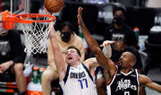 미국프로농구(NBA) 댈러스가 루카 돈치치의 원맨쇼로 플레이오프(PO·7전 4선승제) 1라운드 1차전을 잡았다. 서부콘퍼런스 정규리그 5위 댈러스는 23일 미국 캘리포니아주 로스앤젤레스 스테이플스 센터에서 열린 PO 1차전에서 LA 클리퍼스(4위)에 113-103으로 승리했다. 팽팽한 접전이 펼쳐진 가운데 댈러스는 포인트가드 돈치치의 활약으로 경기를 주도했다. 2쿼터에서 돈치치는 뒤지고 있는 순간마다 3점포를 터뜨렸다. 57-53으로 앞선 상황에서도 호쾌한 3점포를 꽂았다. 3쿼터에서도 LA 클리퍼스가 추격해 올 때마다 3점포를 성공시켰다. 댈러스는 4쿼터 초반 LA 클리퍼스의 니콜라 바툼과 폴 조지, 라존 론도에게 3점 슛을 허용하며 역전을 당했지만 돈치치가 연이어 절묘한 어시스트로 핀리 스미스와 하더웨이 주니어의 3점 슛을 도우며 재역전에 성공했다. 댈러스는 포르징기스까지 골밑에서 힘을 보태며 승리를 따냈다. 팀 내에서 유일하게 40분을 넘게 뛴 돈치치는 3점 슛 5개를 포함해 31득점, 10리바운드, 11어시스트로 트리플 더블을 기록하며 팀 승리를 이끌었다. 통산 PO 3번째 트리플 더블. 지난 시즌 자신의 NBA 첫 PO 무대에서 LA 클리퍼스에 패해 탈락의 쓴맛을 봤던 돈치치는 기분 좋게 복수의 시동을 걸었다. 서부콘퍼런스 정규리그 6위 포틀랜드도 같은 날 1차전에서 덴버(3위)에 123-109으로 승리했다. 유재영 기자 elegant@donga.com}