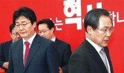 새누리당 유승민 원내대표(왼쪽)와 새정치민주연합 우윤근 원내대표가 2일 굳은 얼굴로 등을 돌리고 있다. 이날 두 사람은 국회 새누리당 원내대표실에서 만나 3일부터 공무원연금 개혁을 위한 실무기구와 특위 회의를 동시에 열기로 합의해 급한 불은 껐다. 그러나 여야의 입장이 엇갈리고 있는 데다 여야 모두 4·29 재·보궐선거에 다걸기하면서 주요 현안들은 뒷전에 둔 것 아니냐는 비판이 나온다. 홍진환 기자 jean@donga.com}