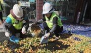 3일 부산 부산진구 직원들이 서면문화로 가로변에서 은행나무 열매를 따고 있다. 은행나무는 10월 초순부터 암나무가 열매를 맺어 떨어지기 시작하는데 악취로 인한 시민 불편을 해소하기 위해 열매를 따고 있다. 박경모 기자 momo@donga.com}