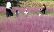 16일 부산 강서구 대저생태공원에서 시민들이 분홍색 핑크뮬리를 구경하고 있다. 외래종 억새로 알려진 핑크뮬리는 화사하고 몽환적인 색감 때문에 사진촬영지로 인기가 높다. 박경모 기자 momo@donga.com}