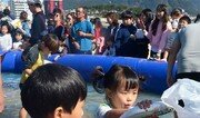 21일 부산 서구 송도해수욕장에서 열린 부산고등어축제 중 ‘맨손 고등어 잡기’ 대회에 참가한 어린이들이 고등어를 잡고 있다. 국내 최대 수산물축제인 이번 행사에는 고등어 런닝맨, 고등어 화덕구이 체험, 고등어회 썰기 등 다양한 체험, 먹거리 행사가 열렸다. 박경모 기자 momo@donga.com}