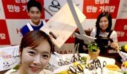 9일 오전 서울 중구 소공로 플라자호텔에서 한경희생활과학의 한경희 대표(오른쪽)와 모델들이 ‘한경희 가위칼’을 선보였다. 도마와 칼이 없어도 재료를 간편하게 손질할 수 있도록 한 제품이다. 최혁중 기자 sajinman@donga.com}