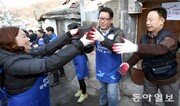 정지선 현대백화점그룹 회장(가운데)을 비롯한 이 회사 임직원 170여 명은 4일 서울 노원구 중계로6길 백사마을에서 연탄 배달 봉사인 ‘사랑의 연탄나눔’ 행사를 가졌다. 이날 현대백화점은 서울의 마지막 달동네로 불리는 이 마을에 연탄 20만 장을 기부했다. 현대백화점은 6년째 시무식을 대신해 백사마을을 방문하고 있다. 최혁중 기자 sajinman@donga.com}
