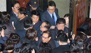 13일 오전 경기도의회에서 유치원 원장들이 누리과정 예산 편성을 요구하며 더불어민주당 의원총회장 입구를 막고 항의하고 있다. 이날 예정됐던 본회의도 누리과정 예산을 둘러싼 여야의 견해차로 무산되면서 본회의장이 텅 비어 있다(아래 사진). 수원=최혁중 기자 sajinman@donga.com}