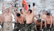 해병대 1사단 수색대대와 미군 해병대 3사단 수색중대 장병들이 28일 강원 평창군 황병산 해병대 산악 종합훈련장에서 한미 해병대 연합 동계훈련을 하던 중 눈을 뿌리며 환호하고 있다. 평창=최혁중 기자 sajinman@donga.com}