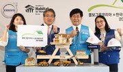양성모 볼보그룹코리아 대표이사(왼쪽에서 두 번째)와 윤형주 한국해비타트 이사장(오른쪽에서 두 번째)이 7일 오전 서울 중구 이비스앰배서더 호텔에서 열린 후원 협약 20주년 기념행사 ‘더 나은 미래 만들기: 미래를 짓다. 희망을 짓다’에 참석해 기념촬영을 하고 있다. 볼보그룹코리아와 한국해비타트는 20년 동안 주거 빈곤 퇴치 집짓기 프로젝트를 함께하면서 누적 기부액 약 20억 원을 달성했다. 송은석 기자 silverstone@donga.com}