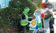 다음 달 12일 개막하는 2019광주세계수영대회를 2주가량 앞둔 25일 광주 광산구 남부대 국제수영장 입구에서 작업자들이 꽃아치를 조성한 뒤 대회 마스코트 수리 모형을 세워 놓고 있다. 박영철 기자 skyblue@donga.com}