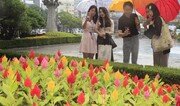 여름꽃 맨드라미가 만개한 26일 광주 북구 용봉동 북구청 광장을 지나던 시민들이 걸음을 멈추고 휴대전화 카메라로 맨드라미를 찍고 있다. 박영철 기자 skyblue@donga.com}