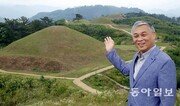 야트막한 구릉 정상에 올라 아래를 내려다보니 봉긋하게 솟아오른 거대한 봉분들이 지평선까지 죽 이어져 있다. 그 뒤로 펑퍼짐한 능선에 자리 잡은 성산산성(城山山城)이 떡하니 버티고 서 있다. 1400여 년 전 아라가야를 점령한 신라군의 위세가 멀리서도 느껴진다. 3일 찾은 경남 함안 말이산 고분군은 고령 대가야와 더불어 위세를 떨친 아라가야의 왕릉답게 5∼10m 높이의 고총들이 장관을 이뤘다. 신라, 왜(倭)로 가는 길목에 있던 아라가야는 주변 강국들의 틈바구니에서 고유 문화를 지키며 수백 년 동안 생존했다. 1992∼1996년 말이산 고분을 발굴한 이주헌 국립부여문화재연구소장(54)은 “함안군 주민들 덕분에 아라가야 고분이 온전히 보존될 수 있었다”고 회고했다.○ 신문배달 소년이 살린 가야 무덤 “박 선생, 이리 빨리 좀 와주이소.” 1992년 6월 6일 오전. 함안 성산산성을 한창 발굴 중이던 박종익 당시 학예연구사(현 국립중원문화재연구소장)가 평소 친분이 있던 한 일간지 지국장으로부터 다급한 전화를 받았다. 자신이 데리고 있는 배달소년이 인근 아파트 공사현장에서 ‘요상한’ 물건을 주워 왔다는 것이다. “암만 봐도 문화재 같다”는 사학과 출신 지국장의 말에 박종익은 꽃삽을 내려놓고 한달음에 현장으로 달려갔다. 소년이 주워서 신문지에 둘둘 말아 넣은 쇳조각을 본 순간 그는 ‘말 갑옷(馬甲·마갑)’임을 대번에 알아차렸다. 조영제 경상대 교수와 경남 합천군 옥전 고분을 발굴할 당시 비슷하게 생긴 말 갑옷 조각을 본 적이 있었다. 소년이 발견한 조각은 황갈색 녹이 두껍게 낀 상태였고, 말에 두른 갑옷답게 길이는 10cm가 넘었다. 갑옷 조각은 굴착기로 배수로를 판 구덩이에서 발견됐는데 다른 조각들도 주변에 흩어져 있었다. 박종익은 즉시 도청에 전화해 공사를 중단시킨 뒤 성산산성 발굴현장으로 돌아갔다. 다음 날 갑옷 수습 임무를 맡은 이주헌이 현장에 급파됐다. 1주일에 걸쳐 흙을 조심스레 제거하자 길이 8.9m, 너비 2.8m의 거대한 덧널무덤(목곽묘)과 함께 말 갑옷이 살짝 모습을 드러냈다. 갑옷을 모두 노출시키는 데 열흘이 더 걸렸다. 1500년이 흘러 부식이 심한 갑옷 표면을 손상시키지 않고 무사히 들어내기 위해 6명이 달라붙어 오직 이쑤시개로 흙을 긁어내야 했기 때문이다. 길이 2.3m, 너비 48cm의 말 갑옷은 한 세트가 시신 좌우에 나란히 묻혀 있었다. 굴착기 삽날로 일부가 훼손된 걸 제외하면 거의 온전한 형태로 발견돼 커다란 관심을 끌었다. 앞서 부산 복천동과 경남 합천군에서 말 갑옷이 출토됐지만 완형이 아닌 조각들이라 전체 윤곽을 파악할 수 없었다. 당시 암 투병 중이던 고고학 대가 김원룡 서울대 교수가 직접 현장을 방문해 유물을 본 뒤 감탄사를 연발할 정도였다. 5세기 중엽 아라가야 때 조성된 이 무덤은 출토 유물의 이름을 따서 ‘마갑총(馬甲塚)’으로 명명됐다. 말 갑옷은 7년의 보존처리를 거쳐 현재 국립김해박물관에 전시돼 있다. ○고구려·백제와 교류 흔적 고고학계는 말이산 고분이 아라가야와 주변국의 문물 교류를 생생히 보여준다고 평가한다. 실제로 마갑총 출토 말 갑옷은 고구려 쌍영총이나 동수묘 벽화에 묘사된 기마병의 말 갑옷과 매우 흡사한 형태다. 이에 따라 400년 고구려 광개토대왕이 한반도 남부를 공략할 때 가야로 유입된 고구려 갑옷이라는 견해가 있다. 그러나 마갑총 조성 시점을 430년 이후로 보면 쇠를 다루는 데 능했던 가야인들이 고구려 갑옷의 영향을 받아 자체 생산한 것이라는 주장도 제기된다. 무엇보다 말이산 고분의 묘제가 시대에 따라 널무덤(목관묘)과 덧널무덤, 구덩식 돌덧널무덤(수혈식 석곽묘), 굴식돌방무덤(횡혈식 석실묘)으로 다양하게 변화된 것도 주변국 영향이 컸다. 이 중 6세기 전반에 나타난 굴식돌방무덤은 백제의 무덤양식을 들여온 것으로 분석된다. 당시 강성해진 신라의 서진(西進)에 위협을 느낀 아라가야는 백제, 대가야와 연맹을 맺은 상태였다. 이주헌은 “마갑총에서 나온 둥근고리큰칼(환두대도)도 백제 중앙과 아라가야의 긴밀한 교류를 보여주는 상징적인 유물”이라고 말했다. ●한국의 인디아나존스들 함안=김상운 기자 sukim@donga.com}