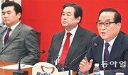 최근 새누리당 김무성 대표의 ‘권력자’ ‘완장론’ 등 강경 발언으로 살얼음판을 걷는 듯했던 여권 내 갈등이 결국 폭발했다. 이번에는 확전 자제 태도를 보여 온 새누리당 친박(친박근혜)계가 대대적인 반격에 나섰다. 오랫동안 쌓인 앙금이 터져 나온 것이지만 ‘왜 지금인가’라는 시점이 중요하다. 결국 친박계와 비박(비박근혜)계가 본격적인 공천 주도권 싸움에 들어간 점과 무관치 않다. 당장 28일 최고위원회의에서는 공천관리위원회(공관위) 위원장 인선을 놓고 정면충돌했다.○ 여권 내홍의 본질은 ‘공천 주도권’ 친박계 지도부는 이날 비공개 최고위원회의에서 공관위원장으로 이한구 전 원내대표를 밀었다. 김 대표는 이미 26일 동아일보 단독 인터뷰에서 부정적인 태도를 보였다. 이 전 원내대표가 과거 여러 언론 인터뷰에서 전략공천의 필요성을 주장했기 때문이다. 100% 상향식 공천을 관철하려는 김 대표와 생각이 다른 것이다. 이날 김 대표는 ‘이한구 카드’를 수용하는 대신 새로운 조건을 내걸었다. 공관위원을 모두 자신이 선임하겠다고 주장한 것. 위원장과 위원을 맞바꾸자는 제안이었다. 당초 공관위원장은 지도부가 협의해 임명하고, 공관위원은 최고위원들이 각각 추천하기로 했다. 이미 일부 최고위원은 공관위원 후보 명단을 황진하 사무총장에게 넘겼다고 한다. 친박계 지도부는 “그게 말이 되느냐”며 김 대표의 중재안을 거부했다. 결국 공관위원장 인선은 이날 결론을 내지 못했다. 다만 김 대표는 “이 전 원내대표를 만나보겠다”고 말했다. 지도부가 공관위 인선을 두고 첨예하게 맞서는 것은 상향식 공천 룰 속에서도 ‘공관위의 힘’을 무시할 수 없기 때문이다. 당장 경선 후보를 추리는 자격심사 과정에서 각 계파가 지원하는 후보를 참여시키거나 배제시킬 수 있다는 것이다. 지역구가 나뉘는 분구 지역을 중심으로 우선추천제를 활용하자며 사실상 전략공천을 주장할 가능성도 있다. 특히 김 대표 측에서는 친박계가 대구 수성갑이 지역구인 이 전 원내대표를 공관위원장으로 추대해 대구 지역 비박계 후보들을 정리하려는 것 아니냐는 의구심도 갖고 있다. 이 전 원내대표는 대구 지역 비박계의 중심인 유승민 전 원내대표와 껄끄러운 관계인 것으로 전해졌다.○ 서청원 “새누리당 권력자는 김무성” 친박계 지도부는 공관위원장 인선 논의에 앞서 공개회의 때 김 대표를 일제히 공격했다. 일종의 기선 제압이었던 셈이다. 서청원 최고위원은 김 대표를 “당신”이라고 부르기도 했다. “김 대표가 신년 기자회견(18일)에서 당신은 (국회선진화법에) 반대했지만 대표로서 사과한다고 했는데, 한 달도 안 돼 지금 누구한테 책임을 전가하느냐”고 목소리를 높인 것. 김 대표가 26일 “(2012년 국회선진화법 통과 당시) 권력자가 찬성하자 (반대하던) 의원들도 찬성으로 돌았다”고 말한 데 대한 정면 비판이었다. 또 서 최고위원은 “새누리당의 권력자는 김 대표 아니냐”며 “김 대표 주변에도 완장 찬 사람들이 매일 별의별 짓을 다하고 있다”고 비판했다. 이어 “누울 자리를 보고 다리를 뻗으라는 얘기다. 김 대표도 자중해야 한다”고 했다. 김태호 최고위원도 “누가 진짜 권력자인지 수수께끼를 하고 있다”며 “마치 코미디를 보는 것처럼 (새누리당이) 희화화되고 있다”고 지적했다. ‘신박(새로운 친박)’으로 불리는 원유철 원내대표도 이틀 연속 김 대표의 ‘권력자 발언’이 사실과 다르다는 점을 부각시켰다. 원 원내대표는 기자들을 만나 “박근혜 대통령이 당 대표와 비상대책위원장을 할 때 공천권을 위임했다”며 “나는 친박이나 비박에는 관심 없다. 옳고 그름에 따라 이야기하는 것”이라고 말했다. 김 대표는 이날 당 내분과 관련해 일절 언급하지 않았다. 기자들이 친박계의 공세와 관련해 여러 차례 질문했지만 “(질의응답을) 그만하자”는 말만 되풀이했다. 여권 관계자는 “‘서로 한 번씩 주고받았으니 이쯤에서 그만하자’는 암묵적 공감대가 있지 않겠느냐”며 “4·13 총선이 70여 일 앞으로 다가왔고, 야당과의 입법전쟁도 빨리 마무리해야 하는 상황에서 친박이든, 비박이든 갈등이 격해지는 걸 원할 이유가 없다”고 말했다.이재명 egija@donga.com·고성호 기자}