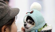 29일 오전 서울 서초구 서초대로 aT센터 전시장에서 열린 반려동물 박람회 ‘프리미엄 펫쇼’를 찾은 견주가 반려견에게 새 옷을 입혀보고 있다.양회성 기자 yohan@donga.com}