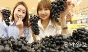 2일 서울 중구 롯데마트 서울역점에서 모델들이 롯데마트 자체 프리미엄 브랜드인 ‘황금당도’를 달고 선보인 페루산 씨없는 포도 ‘세이블’을 홍보하고 있다. 세이블 포도는 식감이 아삭하고 향이 진하며 일반 포도보다 당도가 20% 정도 높은 신품종이다. 한 팩(800g)에 9980원이다.김재명 기자 base@donga.com}