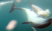 제주도 앞바다에서 생명이 끊긴 지 한참 된 어린 새끼를 등에 업고 다니는 어미 돌고래의 안타까운 행동이 포착됐다. 해양수산부 산하 국립수산과학원은 “11일 제주시 구좌읍 연안에서 남방큰돌고래의 생태를 관찰하는 과정에서 죽은 새끼를 등에 업은 어미 돌고래를 사진과 영상에 담았다”고 26일 밝혔다. 수산과학원이 공개한 영상에 따르면 새끼 돌고래는 이미 숨진 지 오래돼 꼬리지느러미 등 일부를 제외하면 형체를 알아보기 힘들 정도로 부패했다. 하지만 어미는 자기 몸에서 새끼가 떨어지면 다시 주둥이 위에 얹거나 등에 얹기를 반복했다. 김현우 수산과학원 박사는 “새끼의 상태 등을 고려할 때 어미는 2주 이상 이런 행동을 반복한 것으로 보인다”고 했다. 어미 돌고래가 새끼가 숨져도 포기하지 않는 건 아주 드물게 관찰되는 행동이다. 제주도 남방큰돌고래 무리에선 2017년과 2018년에도 비슷한 모습이 발견된 적 있다. 과학자들은 이런 어미의 애착을 무리의 개체를 지키기 위한 방어 행동의 일종으로 보기도 한다. 최완현 국립수산과학원장은 “최근 제주도 연안에서 돌고래 무리를 쉽게 볼 수 있다. 진로를 방해하지 말고 안전하게 지나가도록 도와주시길 부탁드린다”고 했다. 김태성 기자 kts5710@donga.com}