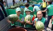 26일 부산 사상구 엄궁농산물도매시장관리사무소 앞에서 유통종사자들이 기부한 수박 700여 개를 차량에 싣고 있다. 이 수박은 경로당, 지역아동센터, 수녀회 등에 전달된다. 박경모 기자 momo@donga.com}