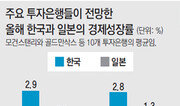 ‘엔화 약세 쇼크’로 한국과 일본 경제의 희비가 엇갈리고 있다. 대형 글로벌 투자은행(IB)들이 한국은 수출 경쟁력이 악화될 것이라며 경제성장률 전망치를 잇달아 내리고 있다. 반면 일본에 대해서는 주요 기업들의 실적이 호전되면서 경제가 성장할 것이라고 장밋빛 전망을 내놓았다. 13일 국제금융센터에 따르면 4월 말 기준 모건스탠리와 골드만삭스 등 10개 대형 IB들이 제시한 한국의 올해 국내총생산(GDP) 성장률 전망치는 평균 2.8%로 집계됐다. 이는 IB들이 1월 말 전망한 2.9%보다 0.1%포인트 낮은 수준이다. 내년 GDP 성장률 전망치도 1월 말 4.0%에서 4월 말 3.9%로 낮아졌다. 한국을 가장 비관적으로 본 건 도이체방크로 올해 GDP 성장률을 2.5%로 내다봤다. 모건스탠리와 바클레이스의 전망치가 3.3%로 가장 높았다. IB들은 지난해 초 한국 경제의 올해 GDP 성장률을 평균 4.3%로 내다봤다가 지난해 6월 4% 아래로 내렸고, 올 1월에는 2% 후반대로 더 떨어뜨린 바 있다. 반면 일본의 경제성장률에 대한 전망은 3개월 사이 빠르게 호전됐다. IB들이 내다본 일본의 올해 GDP 성장률 전망치는 1월 평균 0.9%에서 4월 말 1.3%로 뛰었다. 모건스탠리는 1.6%까지도 예상하고 있다. BNP파리바가 가장 낮은 0.9%로 내다봤다. 내년 GDP 성장률 전망치도 1.1%에서 1.4%로 올렸다. 두 나라에 대한 전망이 엇갈리는 것은 세계시장에서 한국 기업과 일본 기업이 경쟁하고 있는데 엔화 약세가 한국 기업에 불리하게 작용할 것이라는 예상 때문이다. 골드만삭스는 “엔화 약세 추세는 한국의 수출과 투자에 악영향을 미쳐 한국 경제 회복에 걸림돌이 될 것”이라고 분석했다. IB들은 엔-달러 환율이 앞으로 더 오를 것이라고 내다봤다. 스탠다드차타드는 엔화가 추가 약세를 보이면 한국 자동차와 자동차 부품, 기계, 철강 등 주요 수출 산업에 미치는 부정적 파급효과가 더 커질 것이라고 전망했다. 일각에서는 한국 경제가 느리지만 회복세를 보일 것이라는 전망을 내놓고 있다. 한국은행이 발표한 올해 1분기(1∼3월) GDP 성장률이 전기 대비 0.9%로 시장 전망을 웃돌았고 추가경정예산(추경) 편성으로 경기가 활성화될 수 있다는 점을 근거로 분석한 것. 노무라는 정부의 경기 부양책을 긍정적으로 평가하며 올해 성장률 전망치를 기존 2.5%에서 2.7%로 높였다.김유영 기자 abc@donga.com}